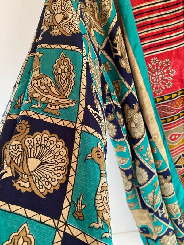 Deze Kimono's van Zijde zijn aan twee kanten te dragen.Ze zijn gemaakt van herbruikbare zijde. Staat super leuk op jeans of op een egaal kleurig jurkje bv. Ook heel fijn voor op reis. Je haalt het uit de koffer en hangt het op de hanger en is zo uit de kreuk.