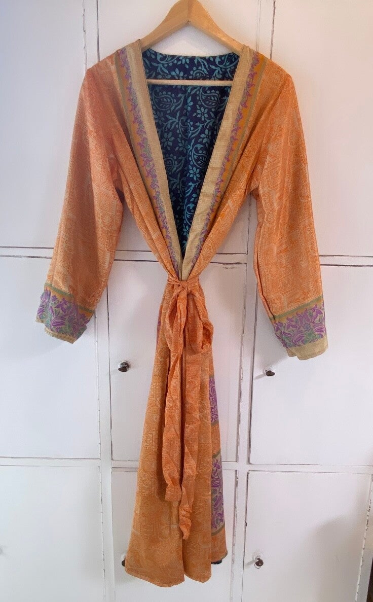Deze Kimono's van Zijde zijn aan twee kanten te dragen.Ze zijn gemaakt van herbruikbare zijde. Staat super leuk op jeans of op een egaal kleurig jurkje bv. Ook heel fijn voor op reis. Je haalt het uit de koffer en hangt het op de hanger en is zo uit de kreuk.