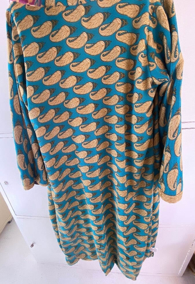 De mooie kimono's van zijde zijn aan allebei de kanten te dragen. De kimono's zijn van gerecycled zijde gemaakt. Ze zijn in verschillende printen en designs. Dat maakt het juist zo leuk om ze te dragen. Ze zijn niet super dun maar wel lekker luchtig. Omdat ze tweezijdig zijn is het makkelijk om ze nog lang door te dragen. De kimono's zijn in twee lengtes te bestellen. De Medium Kinono's zijn van goede kwaliteit. Ze zijn er in de maten M 100 cm en maat L 118 cm .