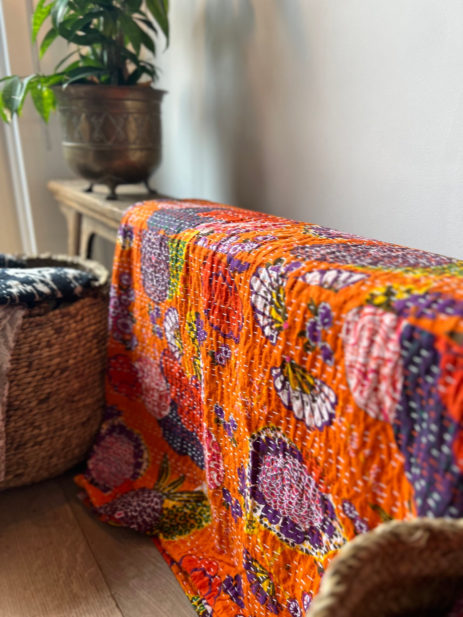 Prachtige grote Khanta Quilt. Heerlijk voor over je bed of over de bank. Mooi doorgestikt en kleurrijke design's. Beetje vrolijkheid in je kamer!