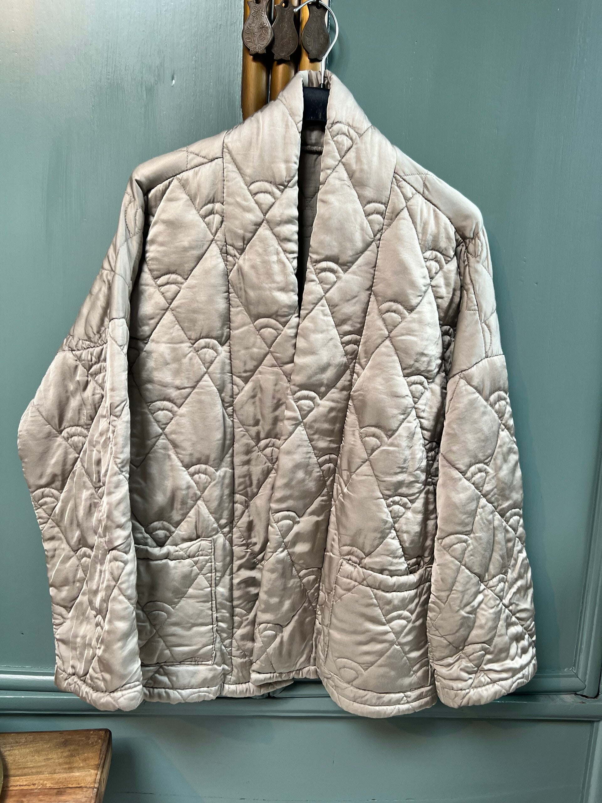 Kort gewatteerd zijden jack in kimonostijl met zakken. Enkele maat 36-42 (S-XL)