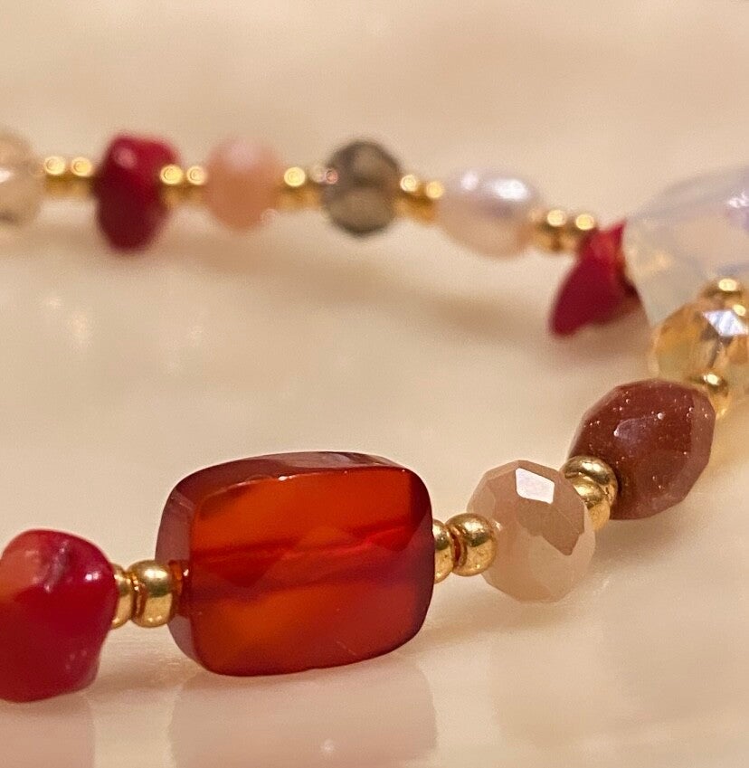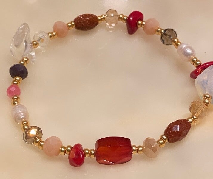Leuke armbanden met half edelsteentjes en met allerlei vrolijke mooie kleurtjes.