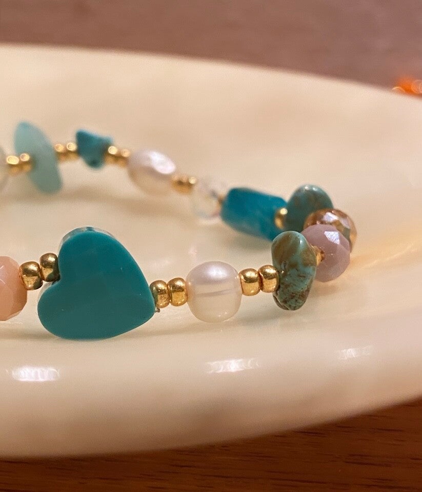 Leuke armbanden met half edelsteentjes en met allerlei vrolijke mooie kleurtjes.
