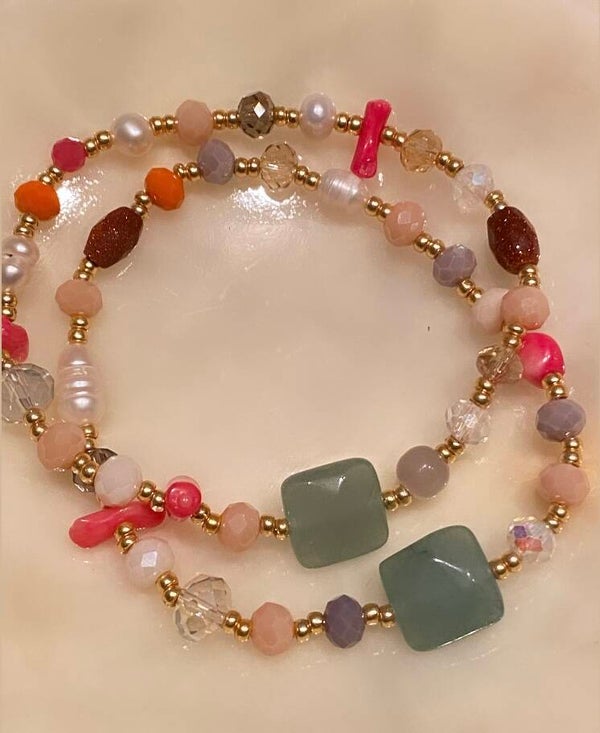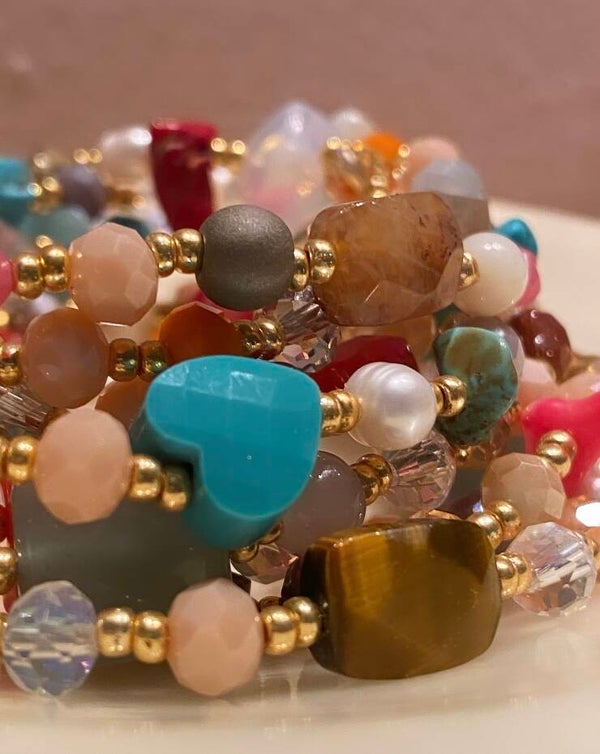 Leuke armbanden met half edelsteentjes en met allerlei vrolijke mooie kleurtjes.