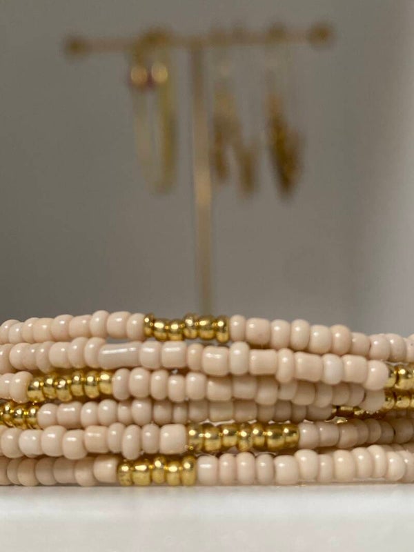 Prachtige glas kraaltjes in Ivoor kleur met goud tinten.