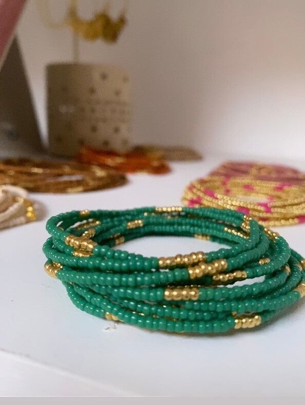 Lange wikkel armband / ketting in een mooie kleur groen en goud tinten.