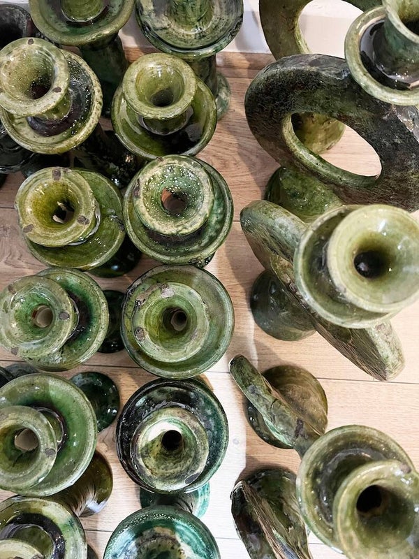 In een mooie donker groene kleur zijn deze mooie Tamegroute kandelaren. Ze zijn ongeveer 12cm hoog. Inperfectie is juist perfectie met dit hand gemaakte aardewerk. Ze worden in Marokko gemaakt en geglazuurd.