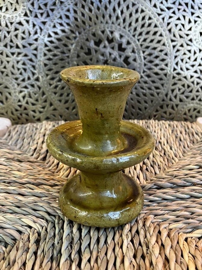 In een mooie donkere mostert kleur zijn deze mooie Tamegroute kandelaren. Ze zijn ongeveer 12cm hoog. Inperfectie is juist perfectie met dit hand gemaakte aardewerk. Ze worden in Marokko gemaakt en geglazuurd.
