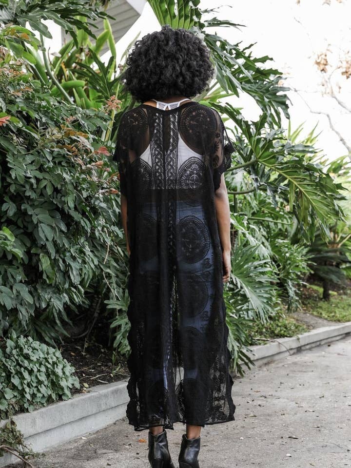 Ontdek de Lace Scallop Trim Mandala Longline Kimono. Gedrapeerd in ingewikkelde mandalapatronen spreekt deze kimono tot de verbeelding en geeft elke outfit een Boheemse flair. De kanten rand met geschulpte accenten versterkt de dromerige esthetiek nog verder en omlijst de stof als een kunstwerk. Maar deze kimono is niet alleen bedoeld voor de show, maar ook ongelooflijk praktisch. Wil je je look veranderen? Knoop hem gewoon in het midden om er een chique, bijgesneden stijl van te maken, perfect om je taille te accentueren of om een meer op maat gemaakte touch toe te voegen.