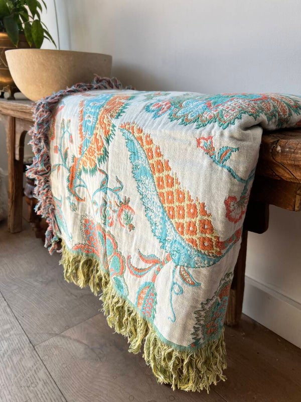 Prachtige woondeken van 100 % katoen en heerlijk zacht. Voor op je bank of bed maar ook voor buiten. Ze zijn aan beide kanten te gebruiken omdat ze helemaal zijn doorgestikt. Ook aan beide kanten een andere kleur stelling. Ze zijn echt super mooi!