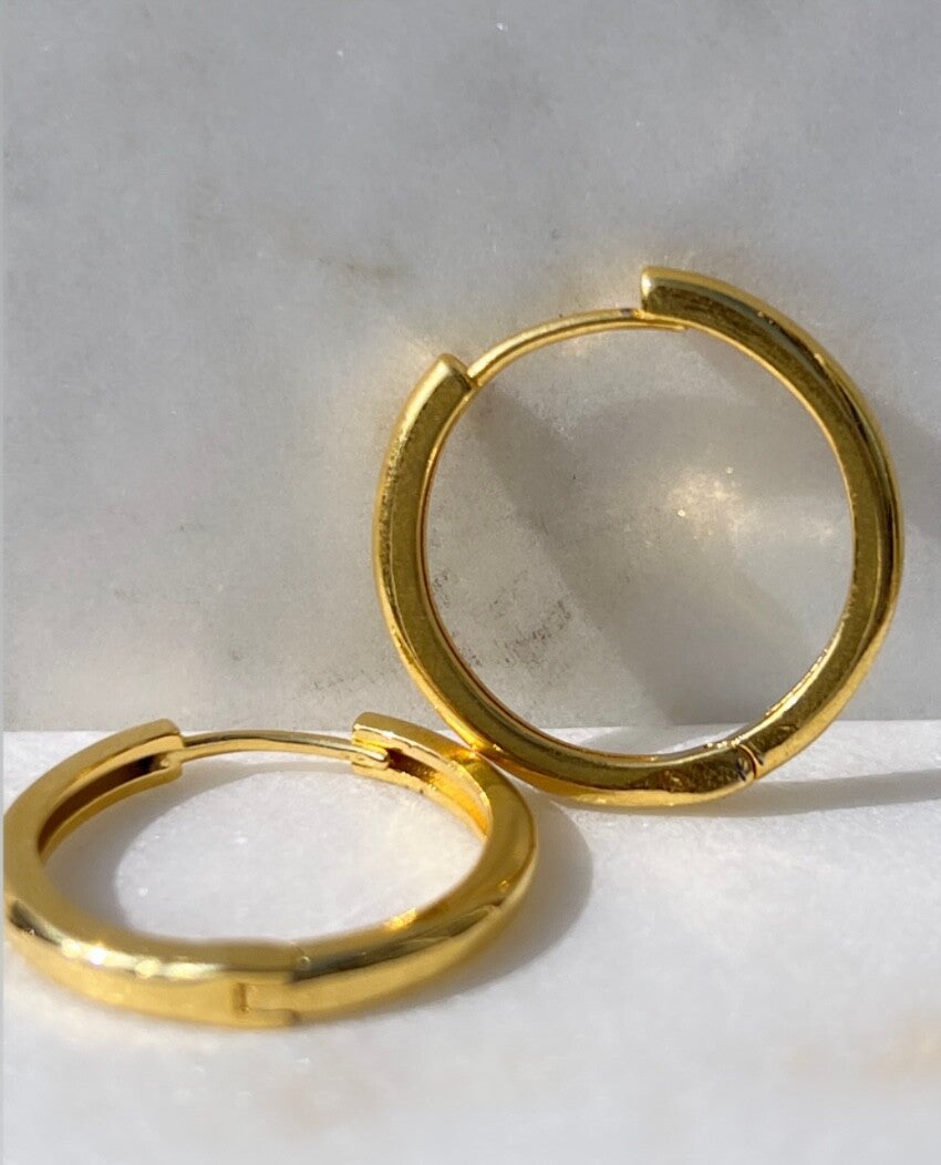 Prachtige vergulde creolen. De grote is 23,5 mm. Ze zijn heel simpel van vorm en hebben een strakke uitstraling. In de site zijn ze ook nog een maat kleiner te bestellen.