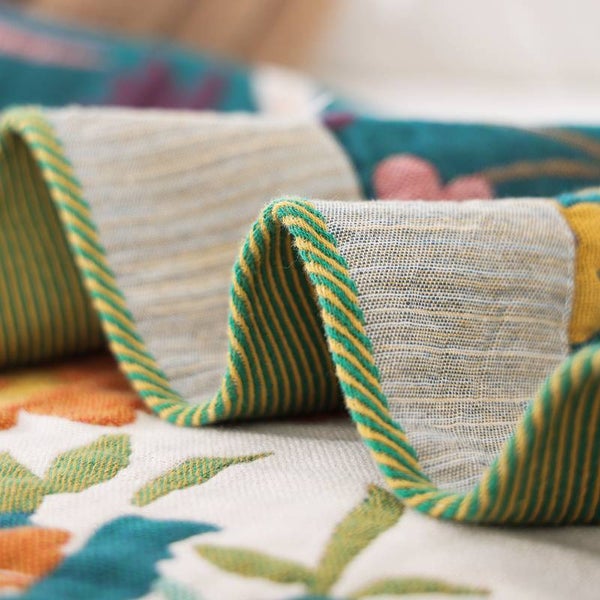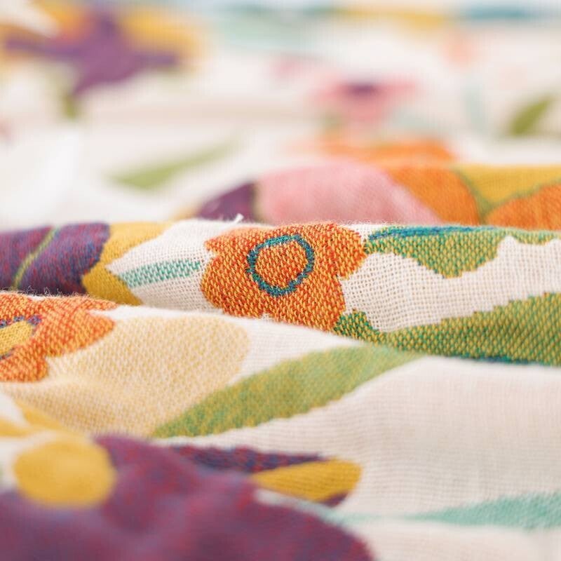 Prachtige deken en super zacht van 100% katoen. Wordt helemaal vrolijk van die kleuren. De deken is heerlijk zacht en heeft twee kleuren. Dus aan beide kanten te decoreren voor over je bed of bank.