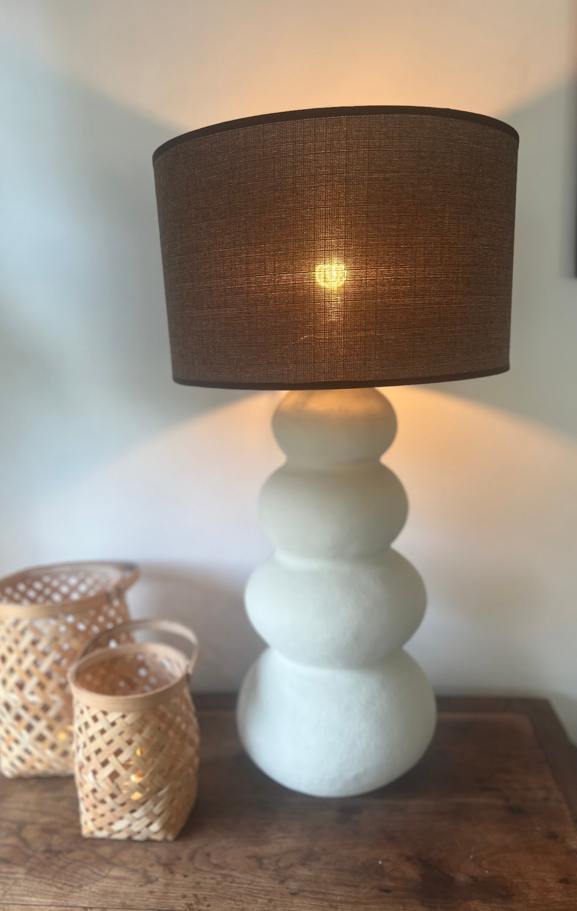 Mooie lamp met kap. Je kunt kiezen tussen de lichte en de donkere kap. De lampen standaard is 50 cm met kap totaal 65 cm. De kleur is monkey van Loft ineen zacht beige kleur.