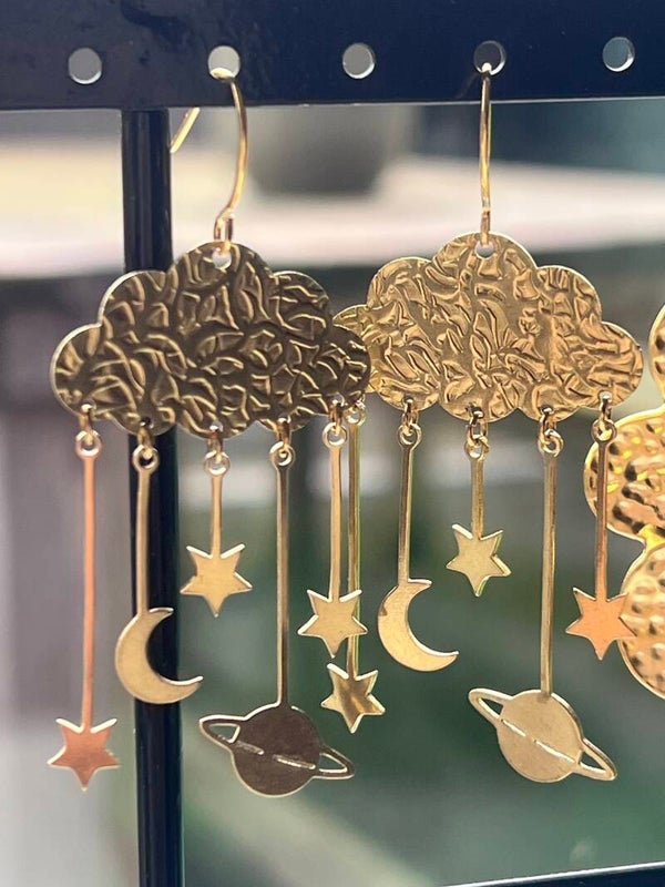 Super leuke oorbellen gemaakt van Brass materiaal. Sterren staturnus en de maan hangen in je oren. Super cute!