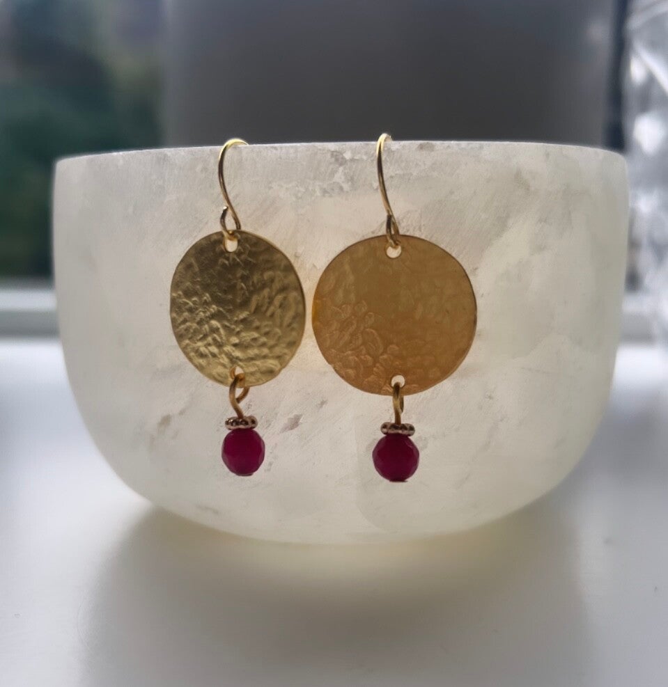 Gehamerde Brass ronde bedels met een rood steentje.