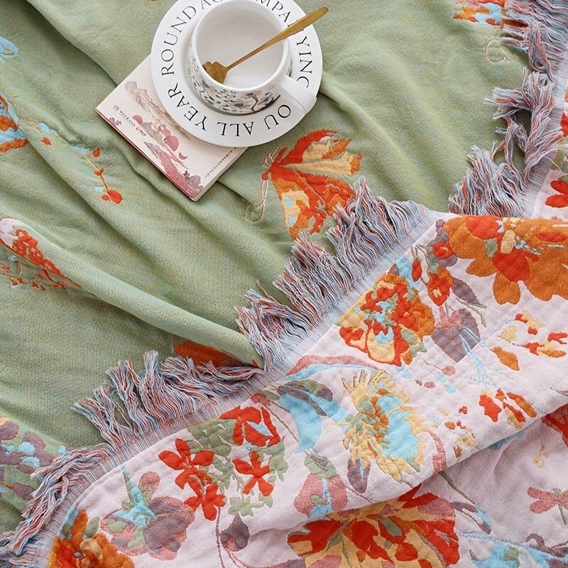Prachtige deken en super zacht van 100% katoen. Wordt helemaal vrolijk van die kleuren. De deken is heerlijk zacht en heeft twee kleuren. Dus aan beide kanten te decoreren voor over je bed of bank.