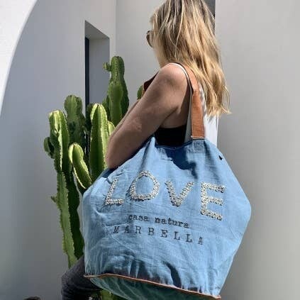De nummer 1 succes tas van Casa Natura sinds 1992, nieuwe strandtas van canvas met exclusief ontwerp met handgenaaide drukknoopsluiting en opdruk. Elke tas is origineel en uniek - de vintage stijl is opzettelijk en de prints variëren in intensiteit vanwege de vintage stijl. Handgemaakt 100% katoen volledig gevoerd