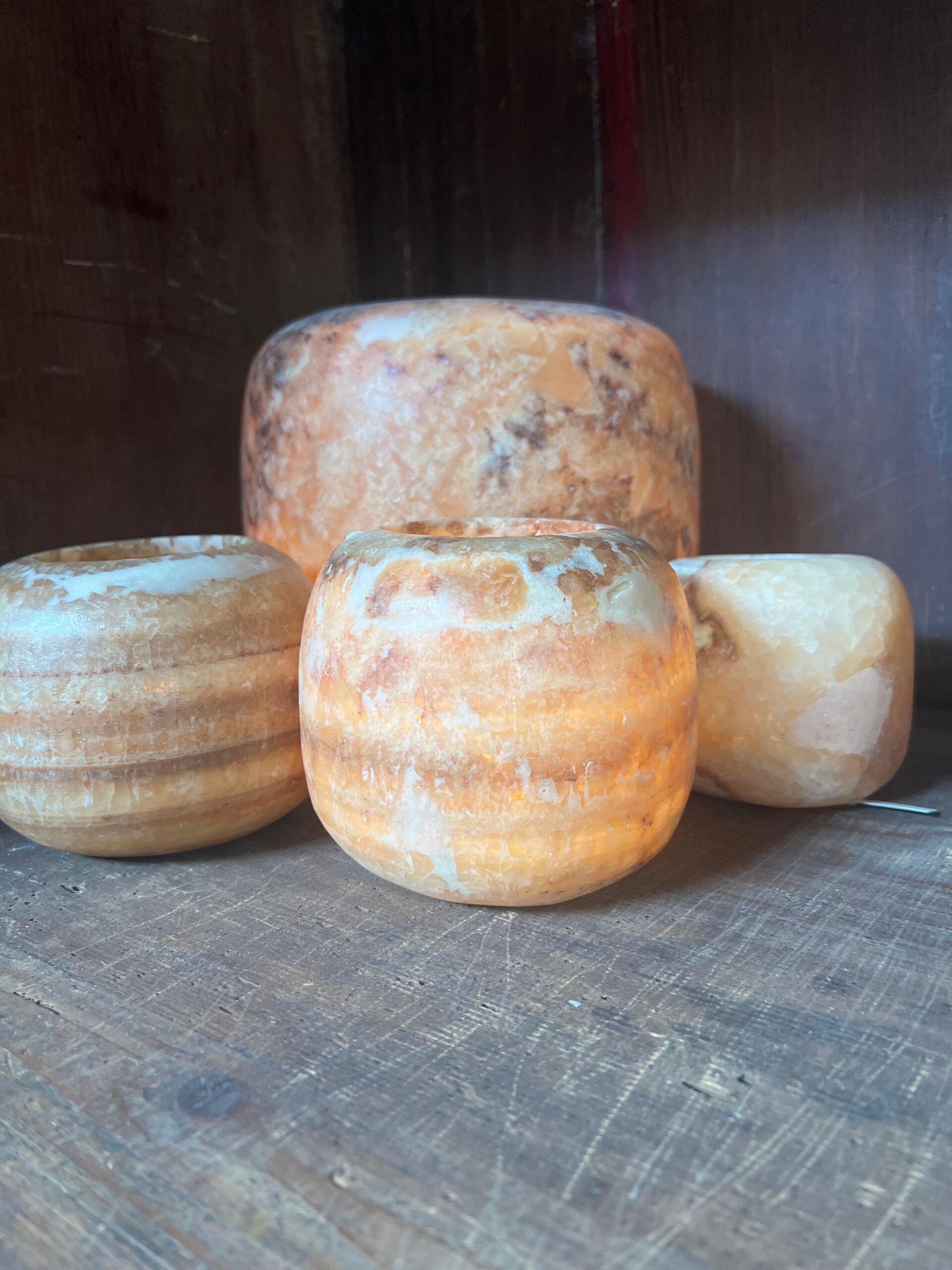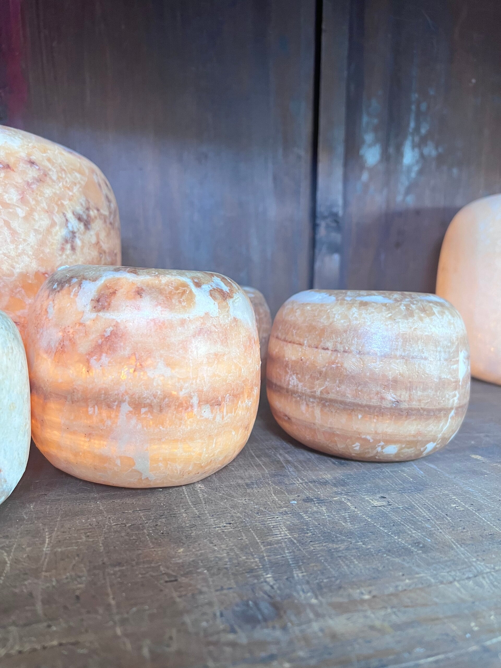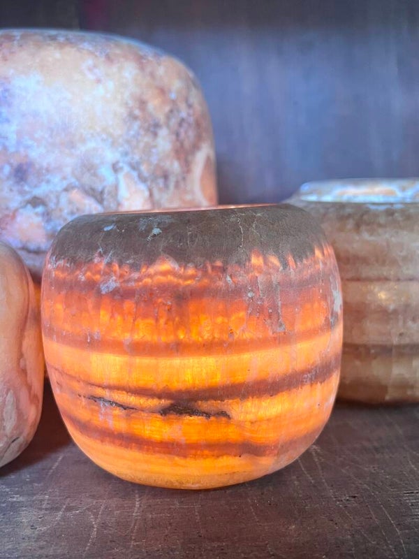 Albasten windlicht bol, deze waxinelichthouders zijn gemaakt van Alabaster en worden vakkundig vervaardigd uit gekristalliseerd steen uit de eeuwenoude woestijn in Egypte. Met een waxinelichtje erin geeft het een warm en magisch licht.