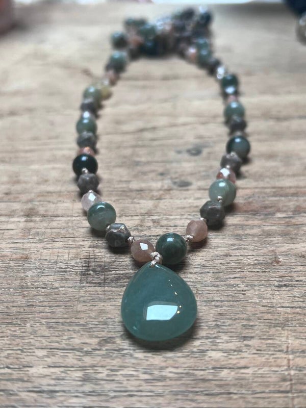 Nog zo'n leuke lange ketting met natuurstenen kralen. De hele ketting is geknoopt.