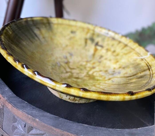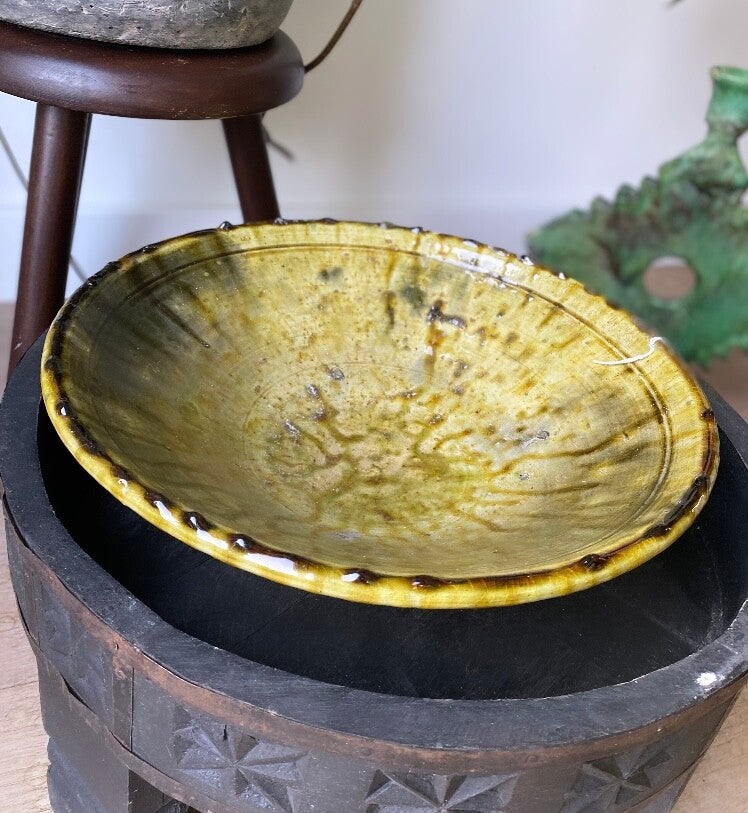 De grootste van de vier, Mooie diepe mostert kleur met een mooie glazuur laag.